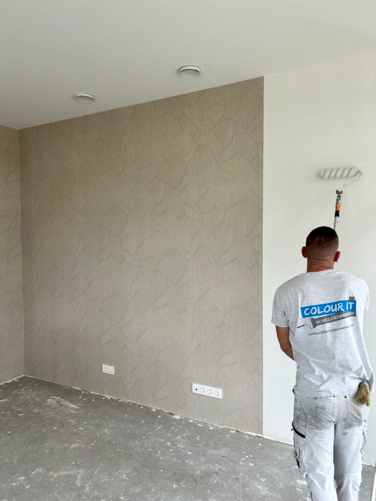In Montfoort hebben wij een nieuwgebouwde villa van binnen volledig in de verf gezet. Ook hebben we hier behangen en een lambrisering gemaakt van verf met een donkere kleur. Dit doen we met hulp van onze laser, zo weten we zeker dat we 100% strakke lijken afleveren.